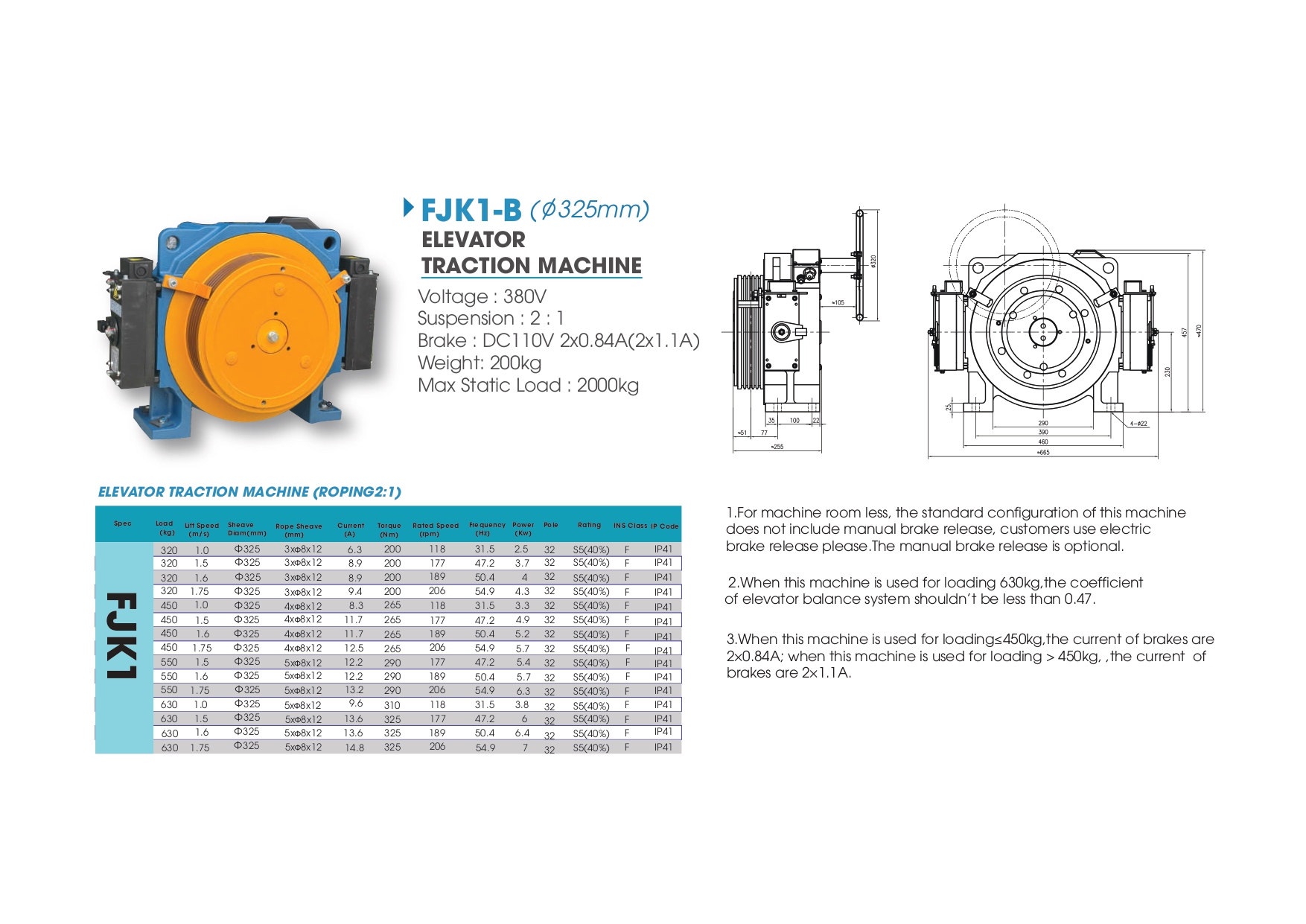 • Model: FJK1-B 630KG-1.0m/s; 4.0kw;3P380V